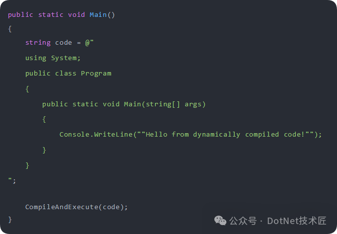 因此,如果你需要在 .NET 6 环境下动态编译和执行代码,推荐使用 Microsoft.CodeAnalysis(也称为 Roslyn)这个更现代的编译器平台。