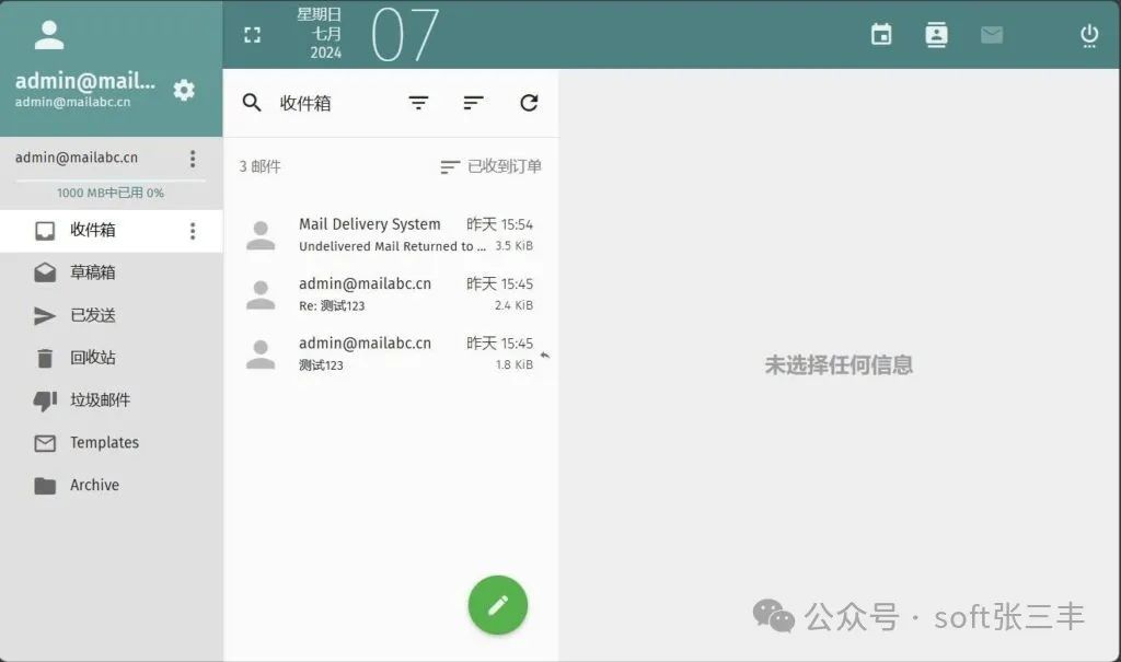 为了便于测试,我创建了一个邮件账号admin@mailabc.cn,登录webmail界面(入口是:https://domain/SOGo/)做一下邮件发送测试: