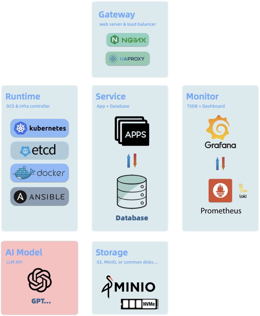你的业务逻辑,业务模型,业务数据放在一个地方,用统一的方式来管理。你的业务代码就是一个放着 Python / JS / Java 等存储过程的目录,更新发布,CI/CD 都非常简单。如果负载高要降级,把非关键的存储过程刷新或在数据库里设置标记就实现了。存储过程避免了应用后端与数据库的多次网络RT,通常有更好的延迟表现(总吞吐量会下降,但以当下的硬件水平与性能余量,Who cares!)你所需要的只有一个 PostgreSQL 数据库,后端融入到数据库里,运维管理极为便利,方便进行单元化部署与敏捷交付。