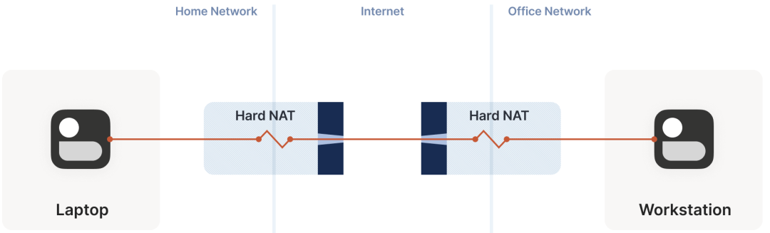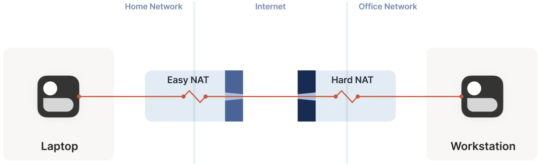 在 NAT 穿透场景中,以上默认规则对 UDP 流量的影响不大 —— 只要路径上所有防火墙的“朝向”是一样的。一般来说,从内网访问公网上的某个服务器都属于这种情况。