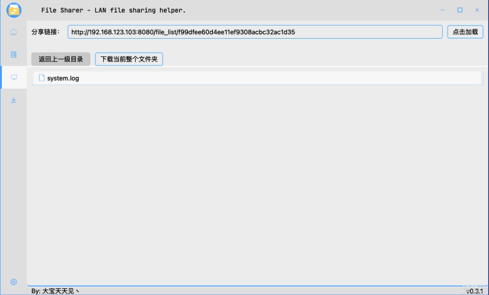 工具主要用于文件/文件夹的分享与下载,支持浏览分享文件/文件夹,最主要的无文件大小限制。