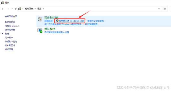 (3)控制面板>程序:启用或关闭Windows功能 (4)控制面板>程序>启用或关闭Windows功能:Hyper-V