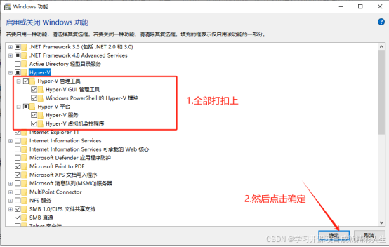 1、下载 Docker Desktop 官网下载地址: https://desktop.docker.com/win/stable/amd64/Docker%20Desktop%20Installer.exe 国内镜像下载地址(本人下载这个): https://smartidedl.blob.core.chinacloudapi.cn/docker/20210926/Docker-win.exe 2、启用 Hyper-V 以在 Windows 10上创建虚拟机 (1)控制面板检查系统要求: 确保您的计算机符合 Hyper-V 的系统要求。通常情况下,您的计算机需要运行 Windows 10 专业版、企业版或教育版,并且具有启用了虚拟化技术的处理器。 (2)控制面板:点击 程序 按钮