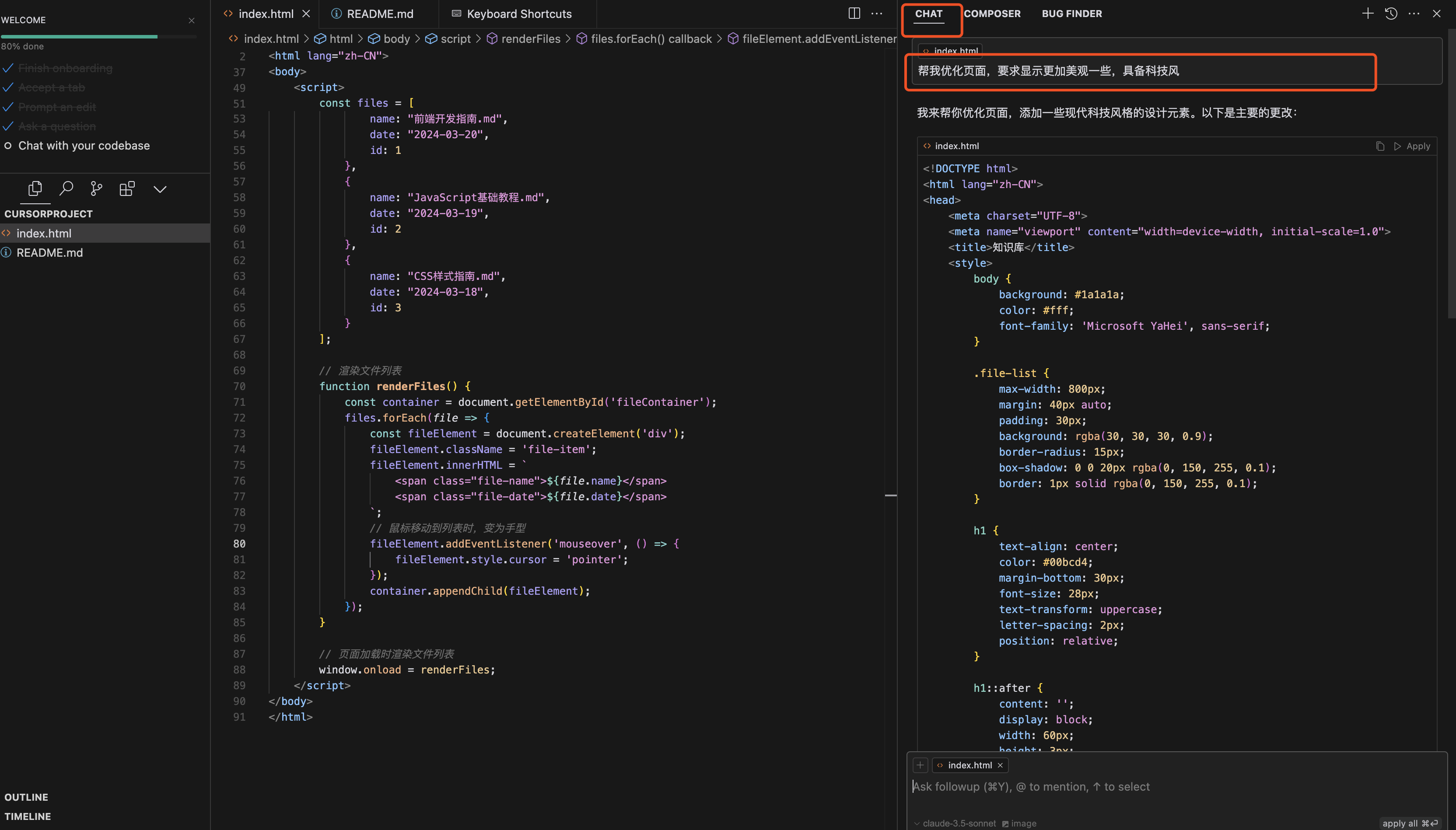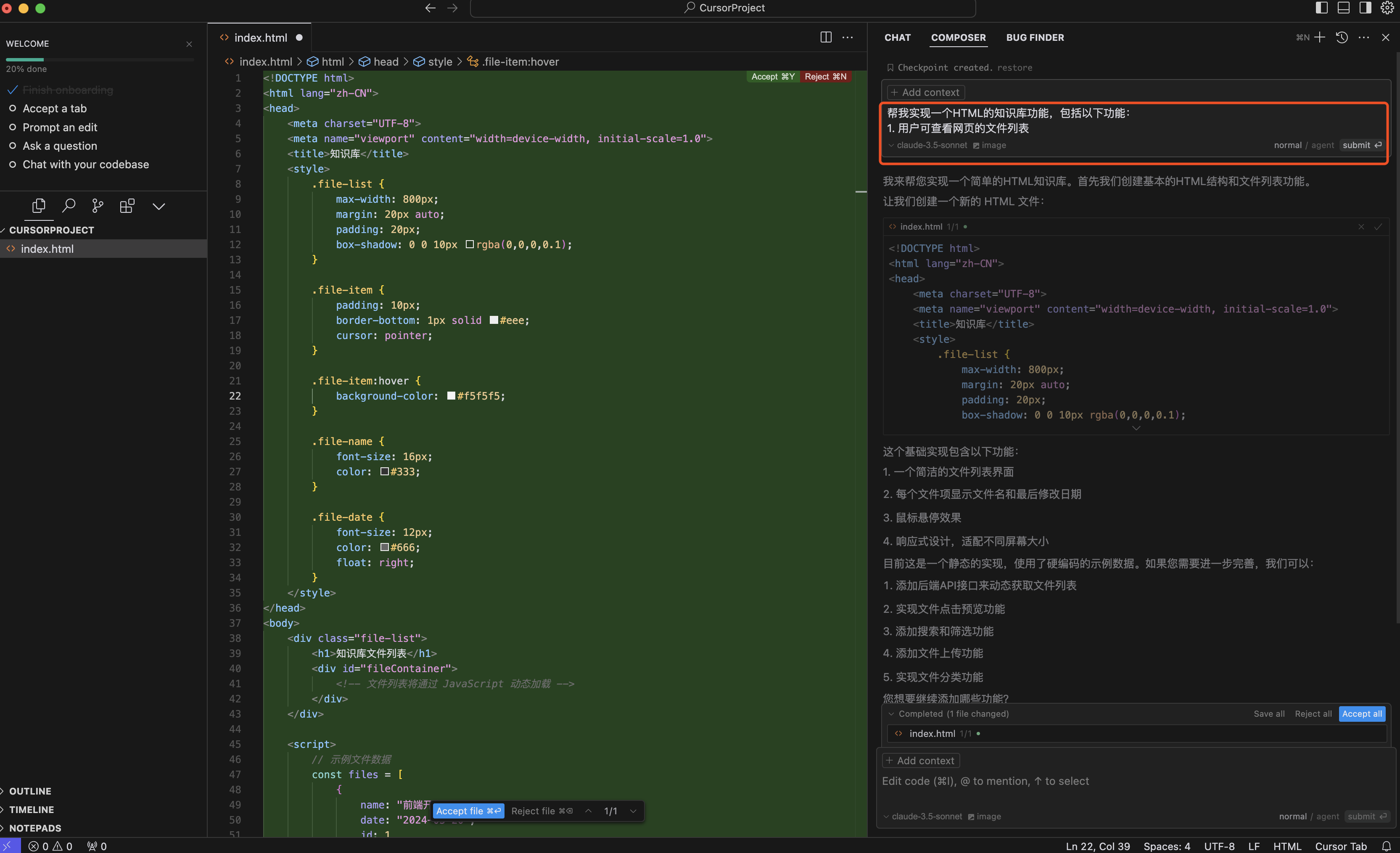 3.基本功能使用3.1创建代码结构Mac用户使用Command + i 可以唤醒Composer,然后我们输入提示词创建代码结构
