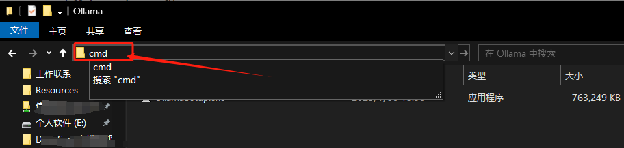 然后在CMD窗口输入:OllamaSetup.exe /DIR=E:\MySoftware\Ollama 语法:软件名称 /DIR=这里放你上面创建好的Ollama指定目录