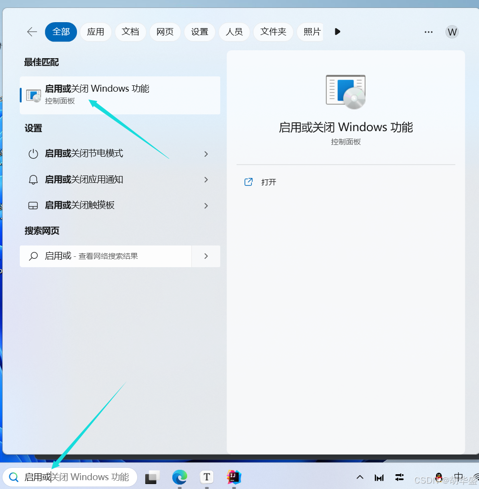我们搜索“启用或关闭Windows功能”,去开启我们Docker所需要的选项。