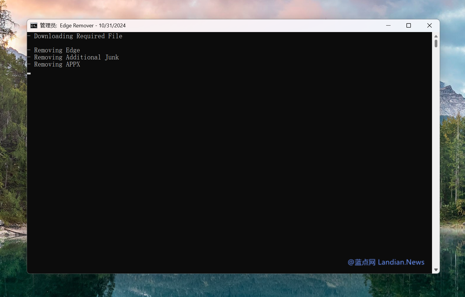 若能成功下载则稍等几秒脚本就会自动工作并删除 Microsoft Edge 相关组件和注册表等,运行结束后关闭窗口即可。