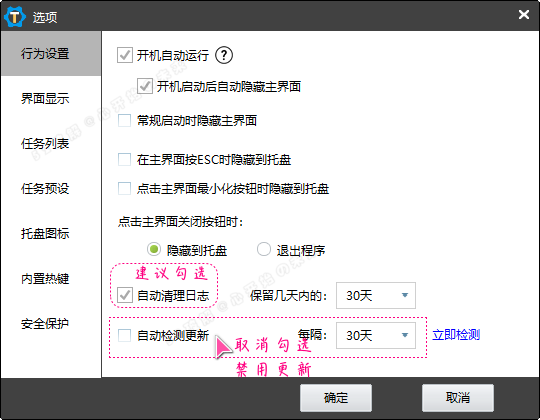 2. 关于更新版本的问题(此为再三重申):从去年的1.85版本伊始就已经支持禁用检测更新的功能,默认会自动启用更新,但若不需要的话请使用快捷键Ctrl + Shift + O 打开设置选项,转至底部直接取消勾选即可禁用掉更新 (之前已经反复强调过数次,请具体实验自测便知一二)。当然,不更新自然享受不到更多更好的功能体验及bug修复调节优化,仅此而已。