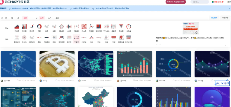 EChart 社区示例 [社区,提供了大量的示例基本可以满足任何需求]