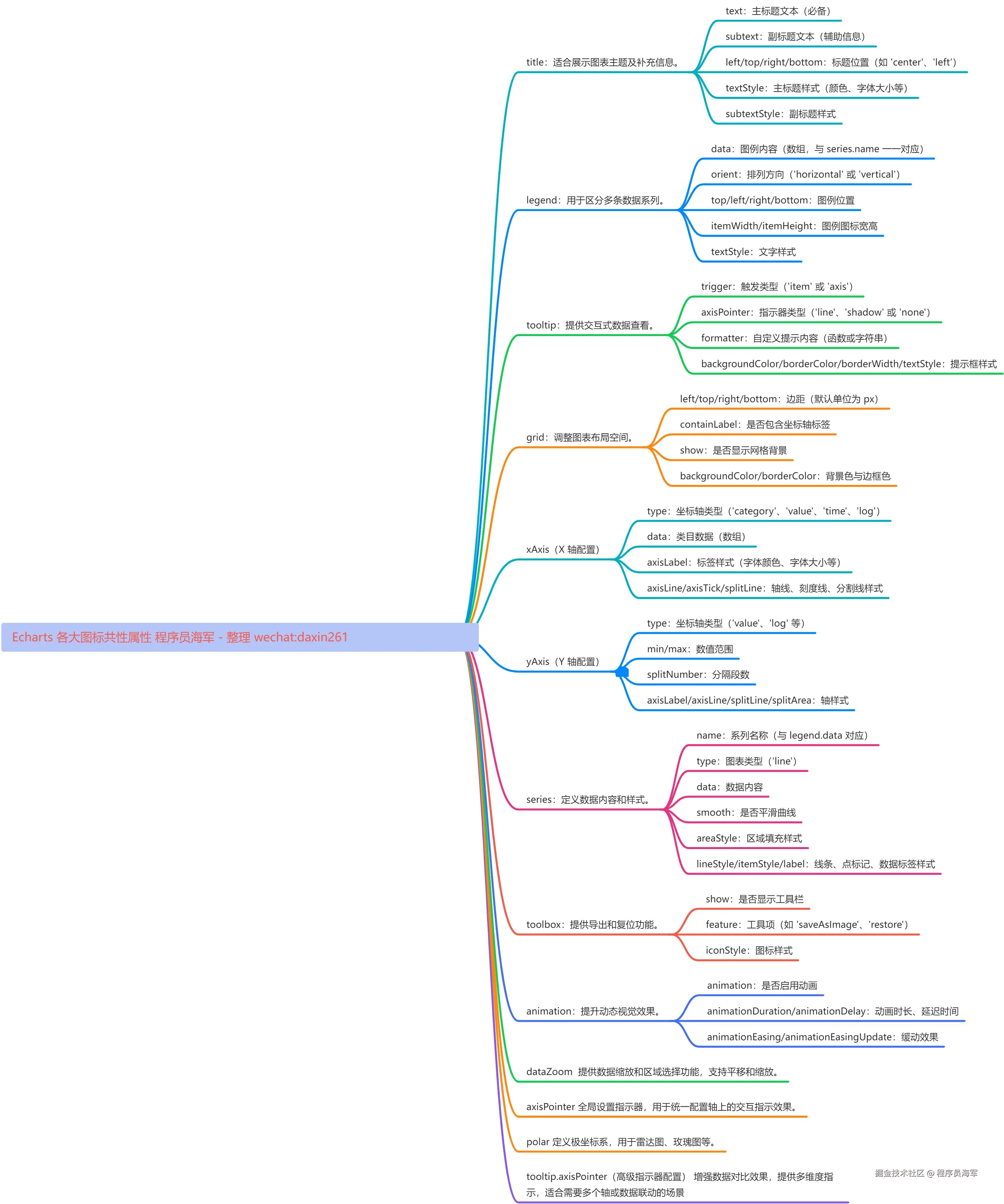 近期我负责的公司人力资源系统中,薪酬统计模块的开发进度正稳步推进。在此过程中,我发现需要展示多种图表(如 ECharts)来直观反映数据。然而,ECharts 的配置过程相对复杂,频繁查阅官方文档不仅耗时,而且效率不高。为了提升开发效率,我萌生了这样一个想法:将 ECharts 中的一些通用属性进行提炼和整理,同时汇总常用的配置项以及在实际应用中需要注意的要点。这样一来,不仅能够简化配置过程,还能为团队提供一个便捷的参考指南。