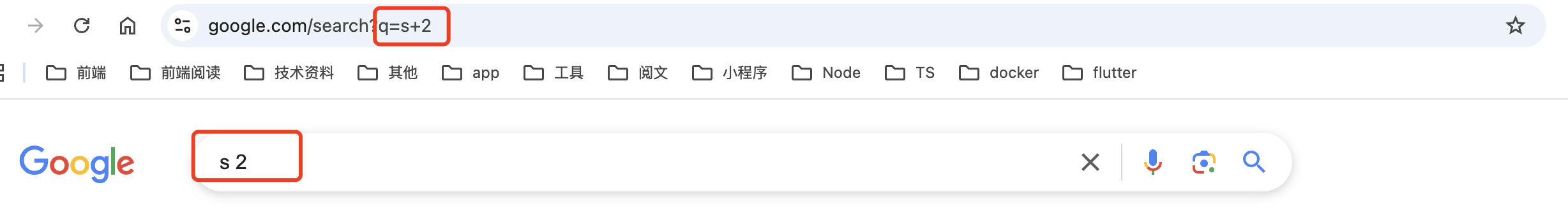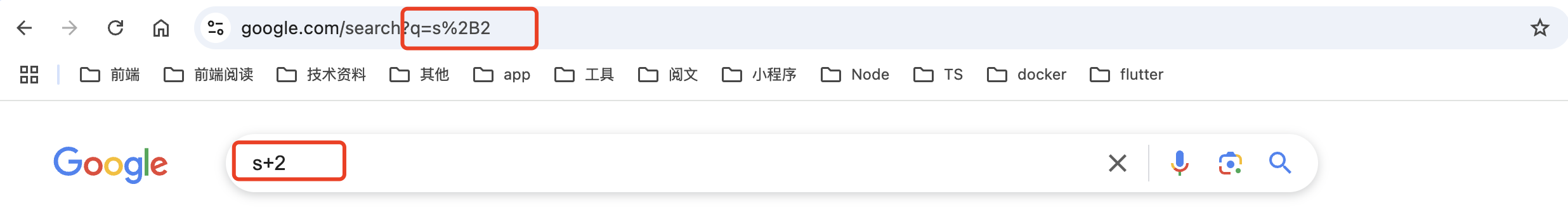 当我们搜索s+2时,地址栏出现的是s%2B2