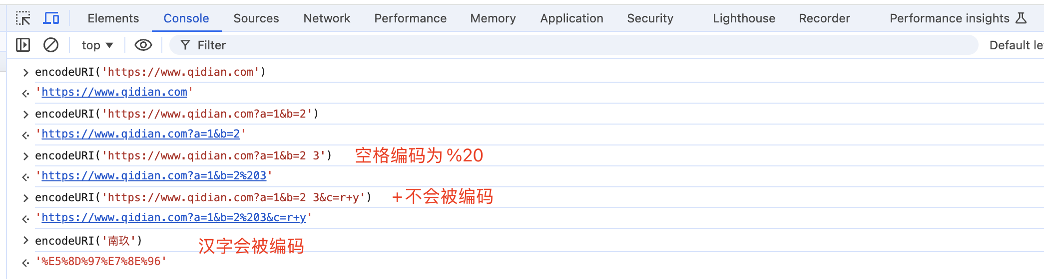 所以对于encodeURI来说,空格会被编码为%20,但是+并不会编码。因为空格是URI中禁止的字符,而+不是