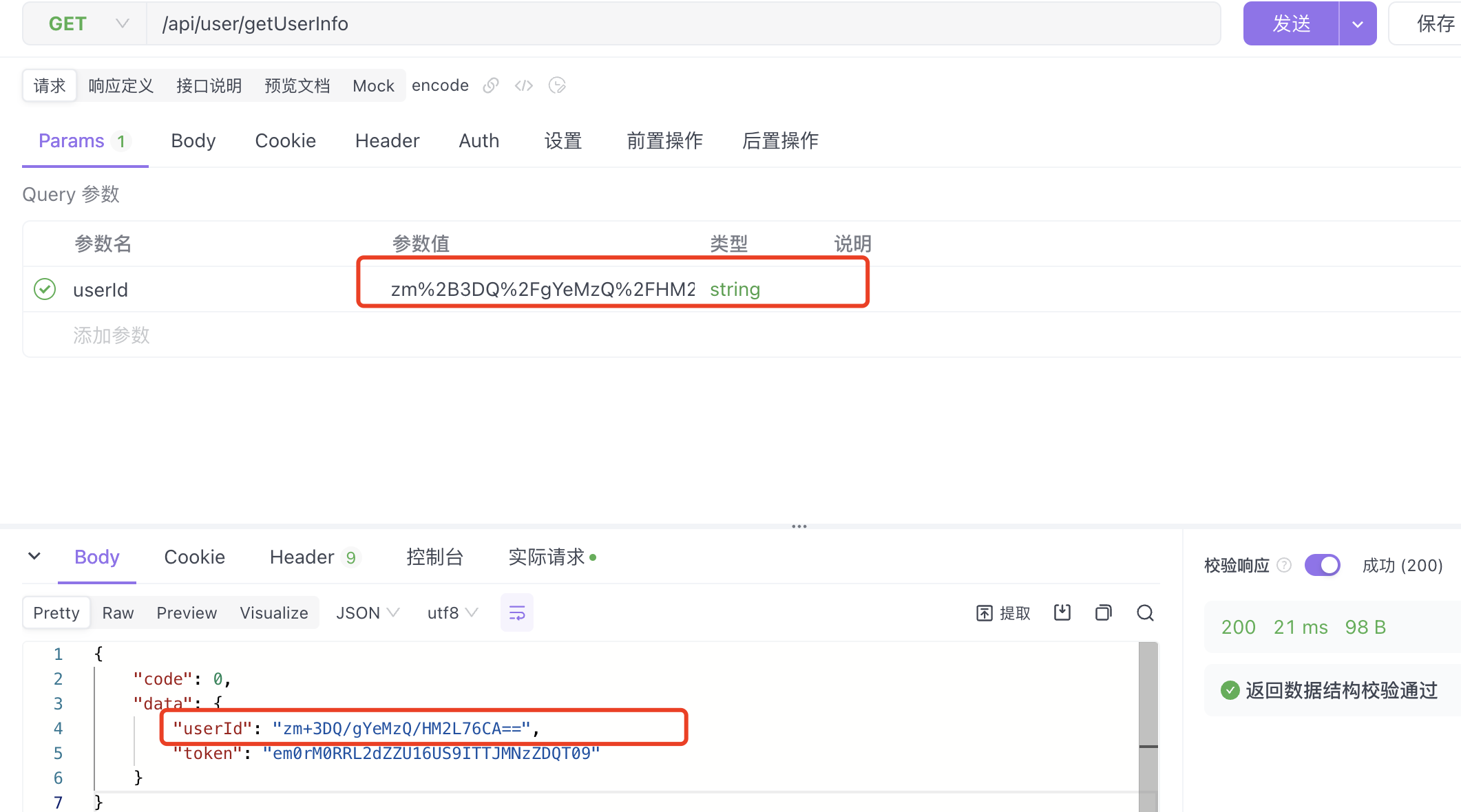 这个问题的主要原因还是因为URL被编码造成的,由于请求是get请求,所以最终所有的参数都是拼接在链接上的,最开始前端传给后端的token是没有经过编码的,那它为什么自己编码了?并且编码后与预期的还不一致?