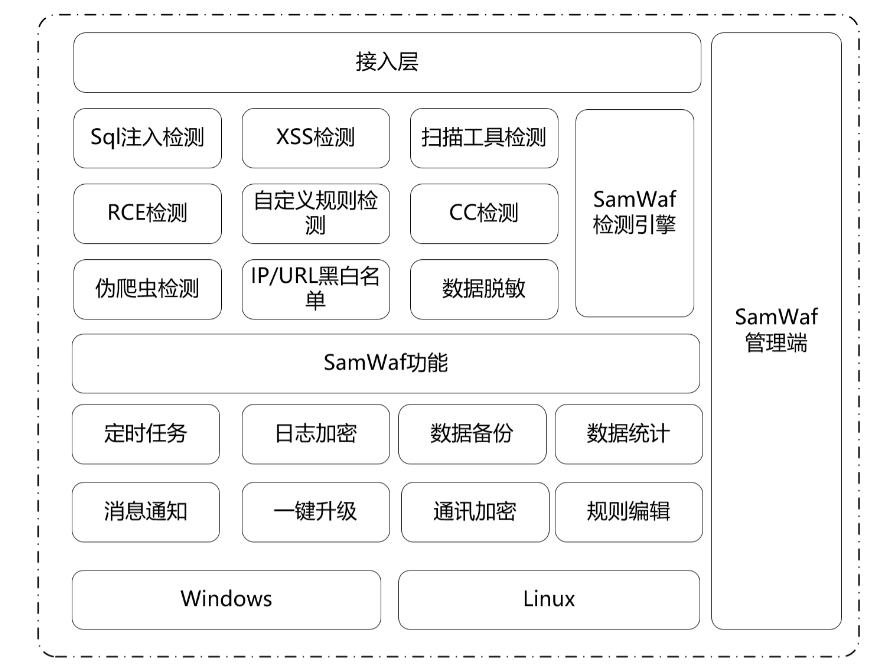 项目诞生于对现有防护工具的深度需求洞察:传统WAF插件耦合度高,云防护方案成本门槛高,且用户常面临自定义能力不足、隐私泄露风险等问题。SamWaf通过独立引擎、全栈加密和模块化规则设计,提供了一套零依赖、易扩展的Web安全解决方案,支持Linux、Windows及Arm架构,覆盖从流量监控到主动防御的全链路防护。