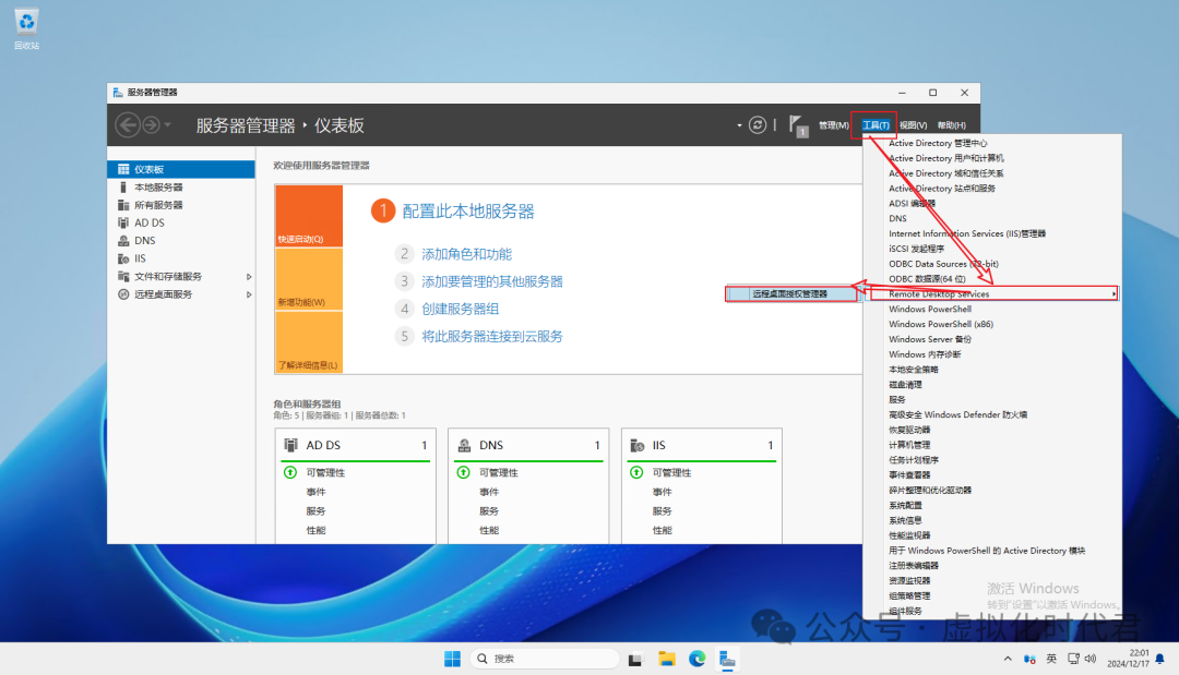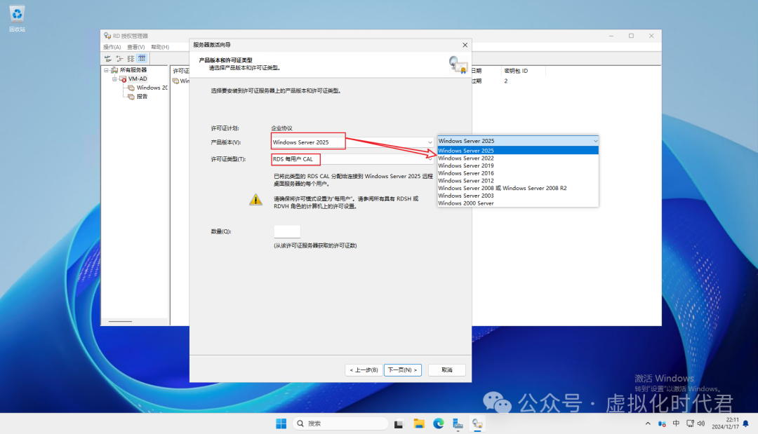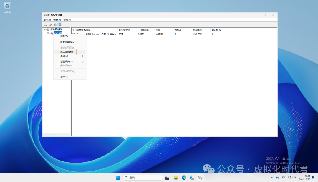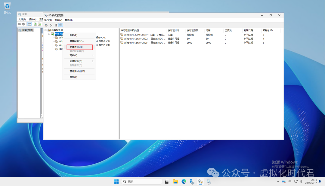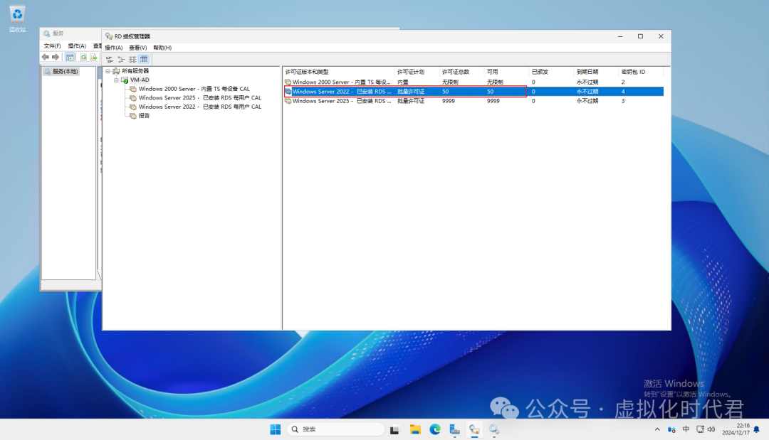 本章节我们主要演示下如何在Windows Server 2025中部署远程桌面服务。在 Windows Server 2025 中,远程桌面服务(RDS,Remote Desktop Services)是一个关键功能,允许用户通过远程桌面协议(RDP)从任何地方访问服务器上的桌面环境。为了管理和控制远程桌面访问,Windows Server 需要远程桌面授权,即用户和设备的许可。远程桌面授权分为 用户 CAL(Client Access License) 和 设备 CAL,在使用 RDS 功能时必须拥有相应的授权。