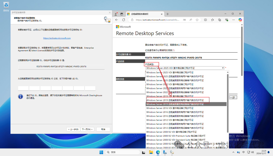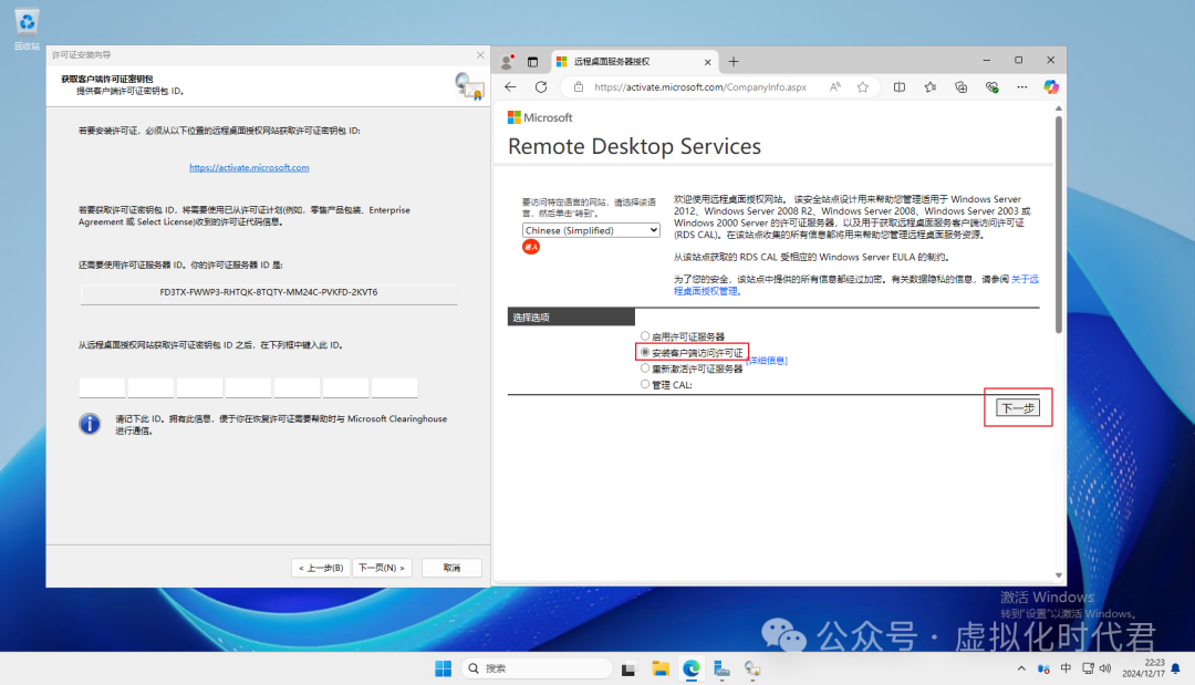 4、打开图示网站:https://activate.microsoft.com/,选择安装客户端访问许可证