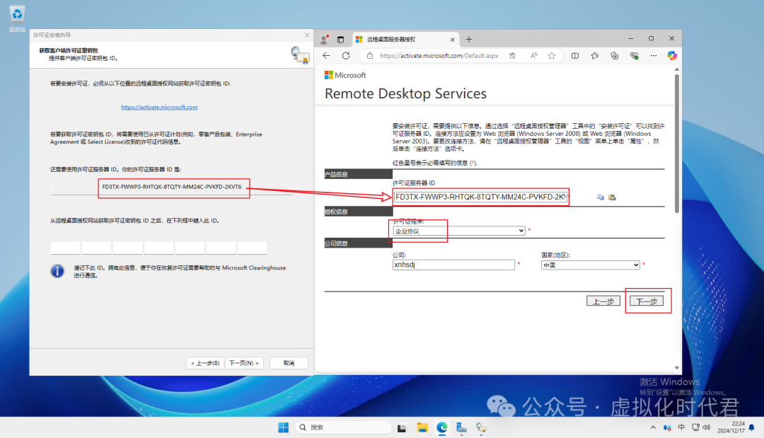 14、输入自己企业的协议号,这个号是你们单位购买之后会产生,或者自己可以去Google