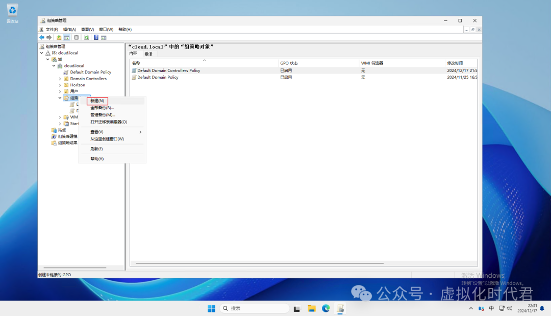 1、打开AD域控组策略管理器,组策略对象中新建一条策略