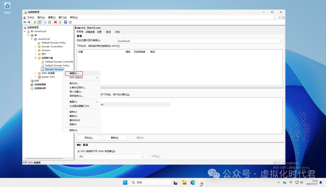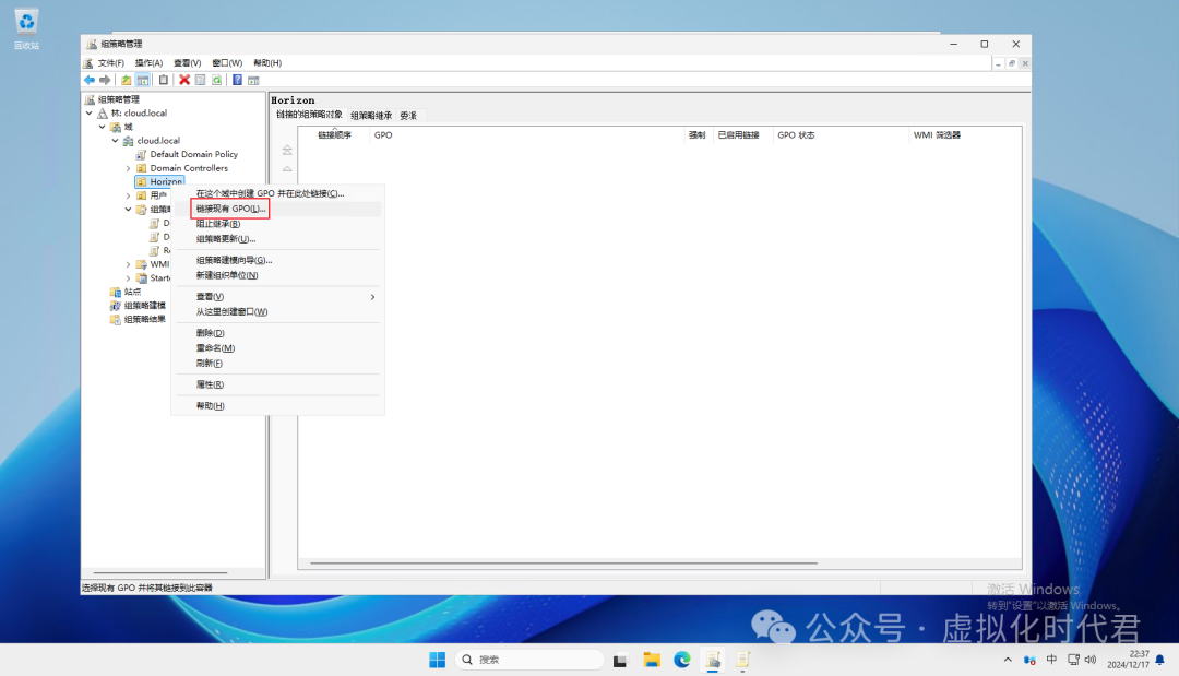 8、然后将策略挂载到计算机所在的OU,右键选择链接现有GPO