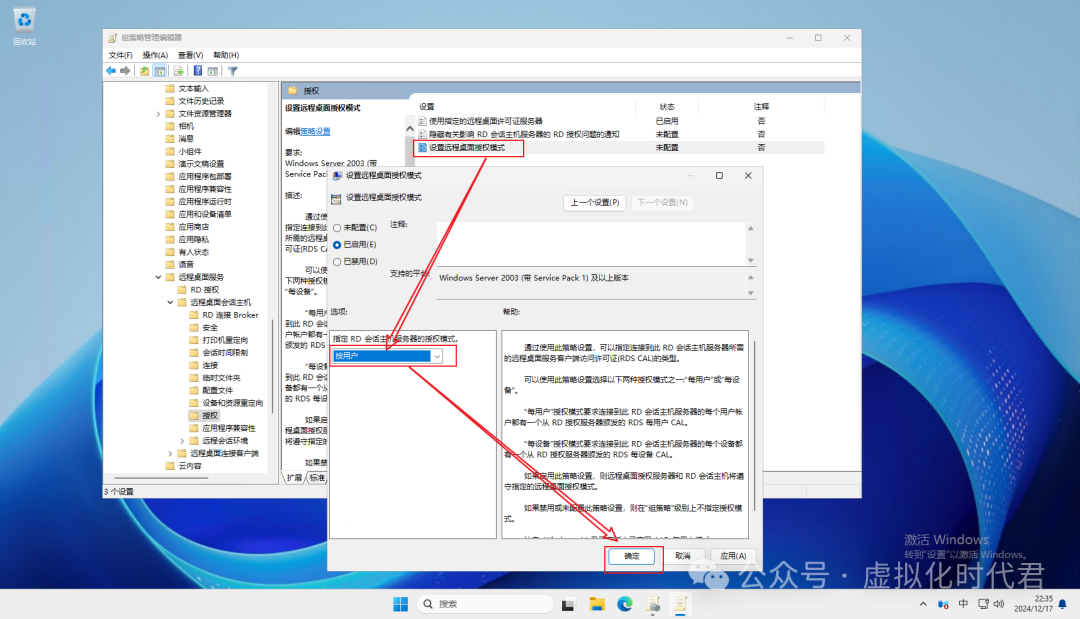6、选择设置远程桌面授权模式,我们的授权是用户,选择用户即可