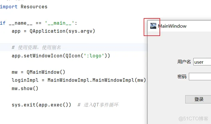 3、编写MainWindowImpl.py继承主窗口 import LoginWindow