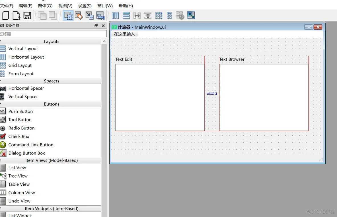 二、QT常用控件 三、布局 1、概述 2、弹簧控件QSpacerltem 3、布局里常用的函数 4、栅格布局 5、表单布局 6、分裂器布局 7、绝对布局