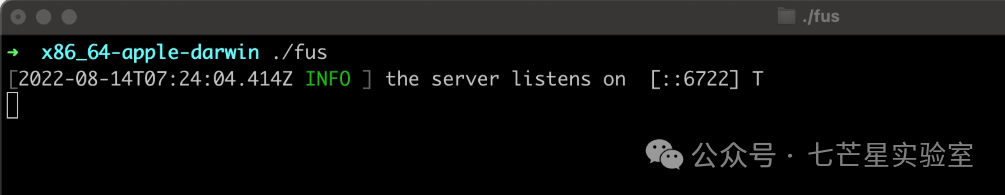 Step 2:在服务器上启动fus 如下图,则表示服务端启动成功(备注:默认情况下,服务端监听6722端口)