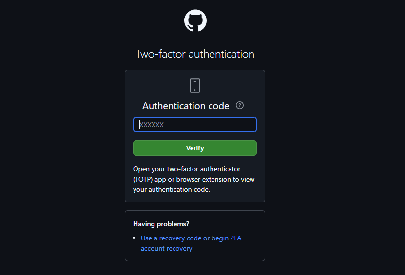 看下GitHub的2FA登录实现。在开启2FA功能的时候,需要在提前在手机上安装一个APP并绑定到GitHub账号上。这样后续在输入账号密码之后,还需要打开APP并将APP中生成的鉴权码填入到界面上进行二次验证,验证通过之后方可进入系统。