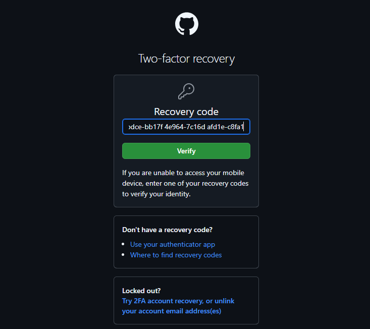 这就要再回到开启2FA认证的时候,服务端除了会生成一个密钥(类似公钥)提供给客户端进行绑定,还会同时提供一份Recovery Code,会提示用户将其可靠保存起来。