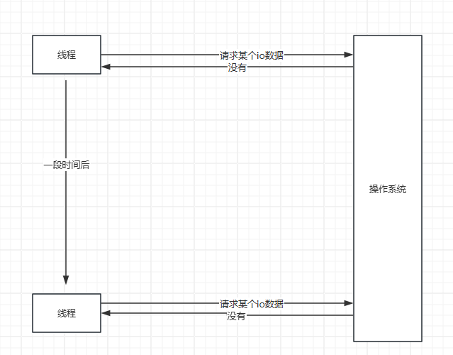 第二种,就是自己调用系统接口,然后操作系统告诉我们没有,这个时候我们可以选择做其他事情,或者等会再来问。