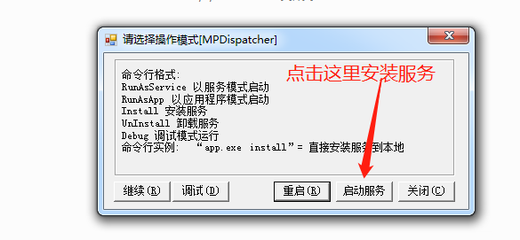 3. 启动MPDispatcher.exe,并在弹出的界面中点击安装服务。