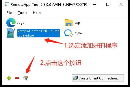 2. 安装完成后运行RemoteAppTool,并配置需要被远程运行的程序: