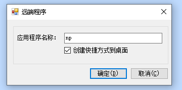 7. 在弹出的界面上输入前面配置好的远端程序名称,点击确定即可运行,为了下次方便运行,还可以勾选在桌面上创建快捷方式,以后只要双击桌面快捷方式就可以运行。