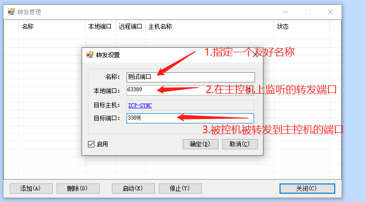 9. 主控机可以通过本地端口连接到被控机的目标端口,如下图所示: