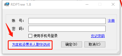 1. 运行RDPTree后,点击为本机设置无人值守访问链接。