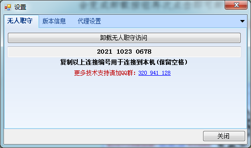 3. 安装完成后会成连接编号,后面主控端需要根据这个连接编号来连接被控机(注意要保留空格),原来安装按钮会变成卸载按钮再次点击即可卸载。