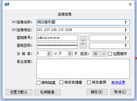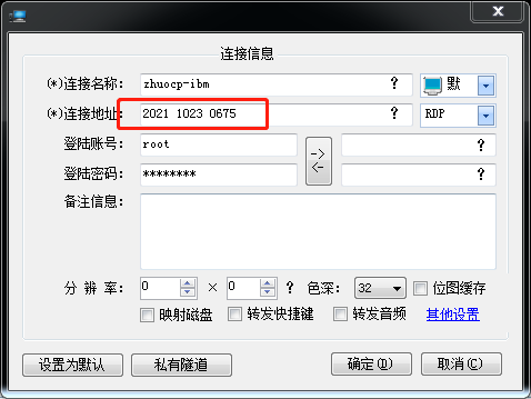 5. 如果连接的是传统的具备互联网IP地址的服务器的话,只要把连接地址一栏改成服务器IP地址和端口即可,端口不输入则默认为3389。