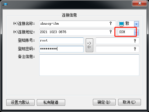 如果被控端是Linux,则修改连接协议为SSH,如下图所示: