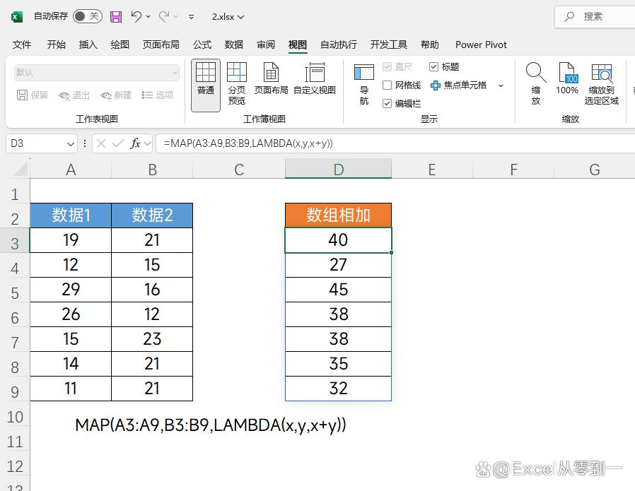 这个函数的作用是让2个区域的数组相加,这个案例的关键是是要告诉大家,MAP是可以设置多个数据区域的,如果你在MAP设置了多个数据区域,就必须要在LAMBDA中定义对应的名称。