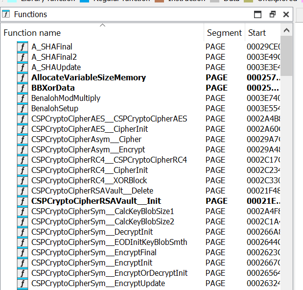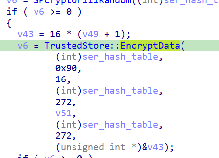 标记所有函数后,我注意到代码中生成受信任存储文件的一种有趣模式,该文件似乎称为“物理存储”。Microsoft 似乎没有选择将加密数据存储在单独的缓冲区中的典型方法,而是选择就地进行加密。