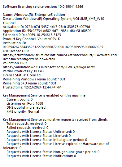 您可以使用 TSforge 中的开关来安装许可证,只需使用激活 ID。您可以通过运行 来获取所有可安装许可证及其激活 ID 的列表。您可以单击弹出窗口并按 CTRL + C 复制所有信息。找到所需许可证的激活 ID 后,按如下方式运行:。/igpkslmgr /dlv all/igpkTSforge.exe /igpk <activation id>