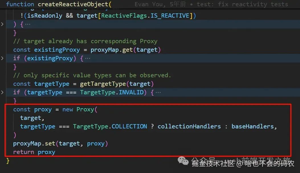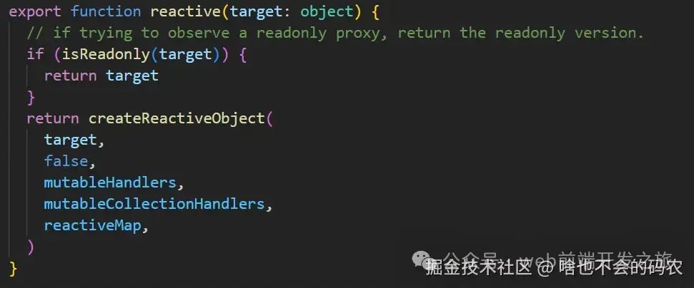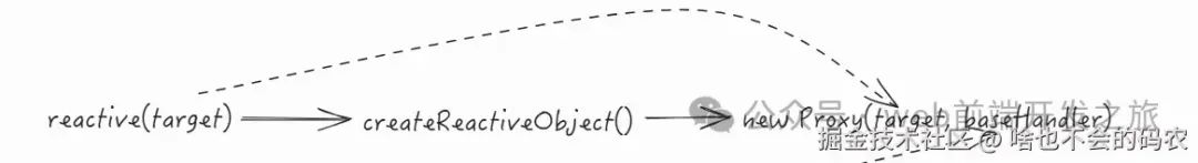 所以,整个reactive函数确实只完成了一件事,那就是生成并返回proxy代理对象,这也是大多数同学探索vue实现响应式原理的终止点。