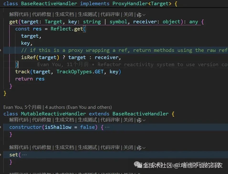 我们看看vue源码对baseHandlers的实现,进入packages\reactivity\src\baseHandlers.ts中我们可以看到以下代码(不重要的代码都被我删除了):