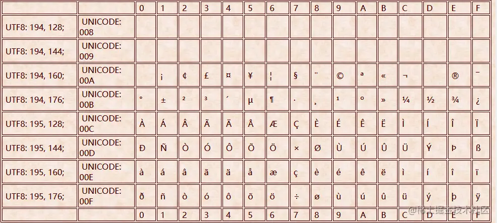 再看看 Unicode的 128-255部分: