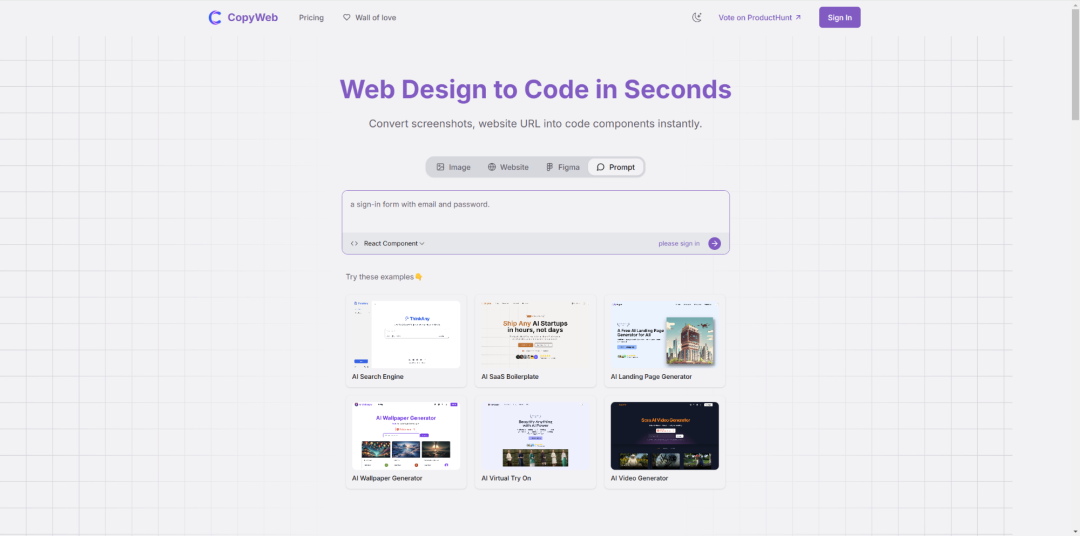 CopyWeb:AI网页克隆工具,30秒就能把网页或截图图片,一模一样地用代码复现