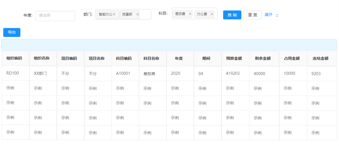06.预算余额表 预算余额表主要用于记录预算执行的汇总情况,可以直观地查看预算余额、占用余额等信息,并为预算控制服务提供基础的余额数据支持。