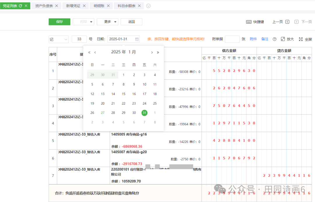文/孔述 月末(年末)货到、票未到的情况时有发生,为确保财务记录的准确性和及时性,需对货物的入库和相关业务进行合理的账务处理。通常的做法是采取暂估入账的方式进行账务处理。 按照购货合同金额暂估入账,会计分录如下: 借:库存商品 贷:应付账款——暂估应付款 次月将此分录做红冲,即:即反向分录。 但由于有些科目,如损益类科目-收入类要做在贷方,费用类要做在借方。而同一经济行为的冲回,应该录入相同方向的红字,即负数。一些软件报表生成规则也严格遵循这一规则,否则科目余额表和利润表数据会对不上。 因此,次月须用红字将上月的暂估入库分录进行冲回,会计分录为: 借:库存商品(红字) 贷:应付账款——暂估应付款(红字) 并根据实到发票金额进行调整,会计分录为: 借:库存商品 借:应交税费——应交增值税(进项税额) 贷:银行存款或应付票据 关于销售与成本调整问题,要分两种情情况处理: 一、 二、 因此,暂估入帐时把握好尺度很重要,一般企业由于进入渠道相对稳定,价格相关一般不会太大。 通过以上步骤,企业可以在发票未到的时期内,一旦发票收到,再按照实际金额进行更正,以维护财务报表的真实性和完整性。 但是,由于暂估凭证跨月。其回冲你还在查找上月凭证的相关分录还在逐一录入吗? 其实,一些财务软件如柠檬云可以一键生成。即简捷,又直观,也避免很多麻烦的手工工作。 凭证列表输入会计期间,本例为上年到10月到25年1月(防止期间漏冲、重冲),搜索摘要关键词“暂估”,。 凭证列表一目了然,其中有“红冲”功能。点击红冲。 红冲情况。选择入帐的月分、日期,保存。摘要清晰显示红冲对应的月分、凭证号 红冲结果 列示两关联凭证红冲情况,并盖上“已红冲”印戳。不重、不漏。 再来查看资产负债表情况。 但此前资产负债表是超过5000万的。而一般纳税人的优惠政策是从事国家非限制和禁止行业,且同时年(季)平均数满足“335”条件。资产超过5000万显然不能享受优惠。而红冲暂估后满足此标准。尽管此处为时间节点为月,非年(季)平均数,但尽量做到向“优惠条件”靠,且暂估数不是真实资产水平。 是否享受小微优惠如何判断,参见以前期《函数功能的智能应用——MATCH函数》。