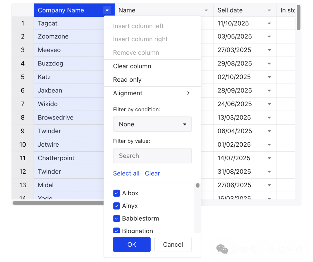 • 灵活的定制性:支持自定义列头、行号、单元格格式、菜单等,并提供大量的插件扩展功能。
