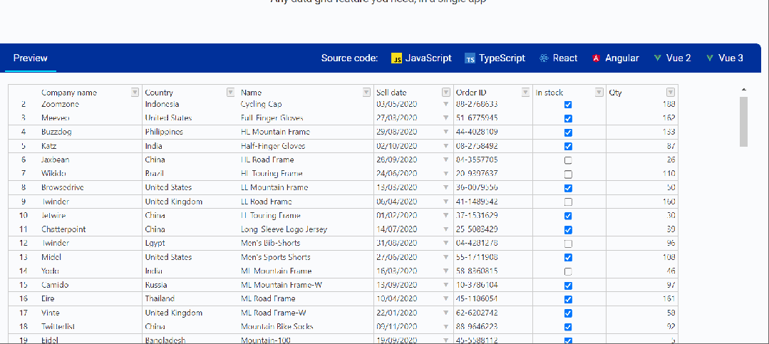 • 丰富的交互功能:支持单元格编辑、筛选、排序、拖拽、复制粘贴等操作,并提供各种自定义事件和回调函数。