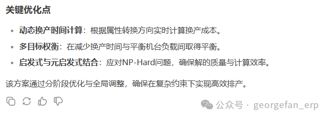 再来一个APS的经典场景:注塑机车间排产。 这次Deepseek给出的不仅是一个解决问题的框架性的方案,还给出了详细的求解模型的数学描述(数学建模),你只要找一个商业求解器,就能立马进行测试了!!!APS从阳春白雪进入了平民化,往昔,只有应用数学的硕士博士们擅长的数学建模工作,就这么被AI掀桌子了!激动过后,是内心的凄凉!继八字算命之后,又一个行业被毁了。 本文的内容: